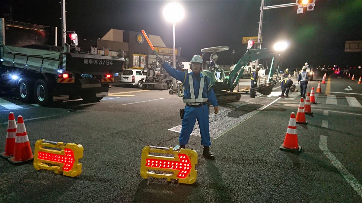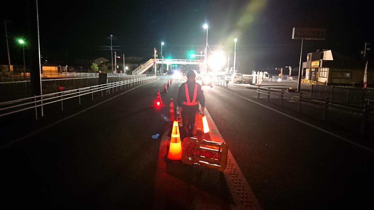 5月10日に旧国道41号線にて舗装工事に伴う夜間規制がありました。金曜日の夜間規制のせいか交通量は多めでした。