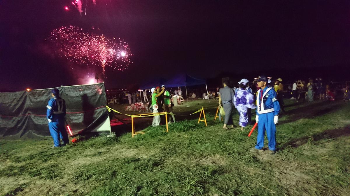 美濃加茂市のおんさい夏の陣花火大会会場の警備に参加してきました。大変な賑わいでしたが、祭りスタッフとともに協力し何とか無事故にて終わることができました。